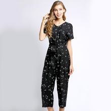 人造棉绸连衣裤九分裤女连体裤阔腿碎花连身裤子大码新款夏季绵绸