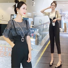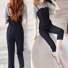 小脚九分背带裤吊带连体休闲连衣铅笔裤小个子时尚两件套装女夏季