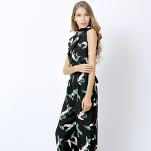 天然出品 仙鹤 宽松大码休闲短袖印花雪纺九分连体裤连衣裤女夏