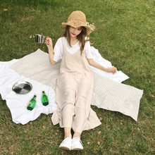 夏装韩版阔腿连体裤裙大码棉麻吊带裤休闲学生九分宽松亚麻背带裤