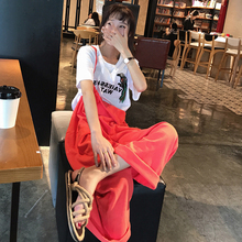 2019春夏韩版阔腿连体裤裙女宽松大码九分裤棉麻吊带学生背带裤潮