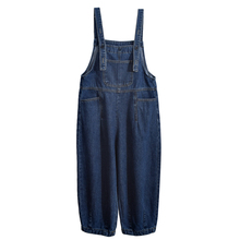 深蓝色背带阔腿裤女显瘦韩版宽松高腰直筒网红哈伦牛仔裤小个子秋