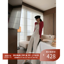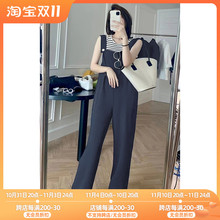 红人馆小香风背带裤女春秋2022时尚新款设计感宽松休闲开叉阔腿裤