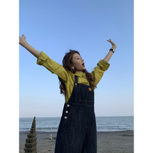 JHXC 黑色牛仔背带裤女小个子2022秋季新款潮宽松显瘦直筒阔腿裤