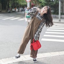 十一石 直筒阔腿工装背带裤女小个子宽松休闲连体裤2022新款秋季