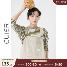 「GUIER」韩版直筒背带牛仔裤女2022秋冬新款小众设计感阔腿裤子