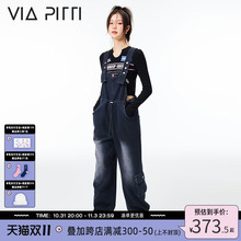 SIXI四喜家秋季 复古做旧感 宽松减龄牛仔背带裤女阔腿裤老爹长裤