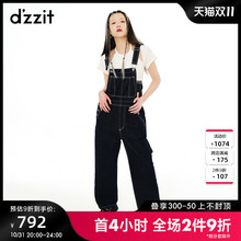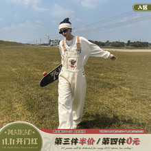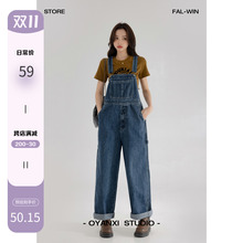 24h Vibing 背带牛仔裤女美式复古宽松直筒减龄阔腿裤ins显瘦长裤