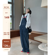 森马牛仔裤女纯棉宽松背带裤2022春秋季新款小个子直筒阔腿吊带裤