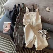 炸街~编织粗花呢小香风背带连体裤女2022初秋新款阔腿拖地连衣裤