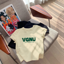 落落狷介 修身T恤女设计感夏女装2022新款潮短袖淡黄色字母上衣