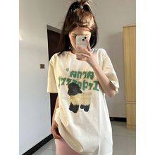 奶黄色纯棉短袖t恤女夏季美式复古oversize小众设计高级感上衣服