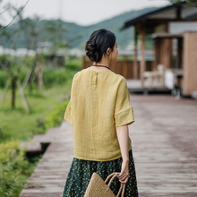 jmwomen奶黄色圆领短袖t恤衫女夏季新款日系复古半袖体恤宽松上衣