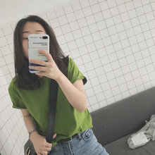 白色t恤女短袖2022新款圆领宽松纯色体桖打底衫黄色上衣韩版纯棉
