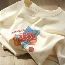 dddshop樱桃短袖230g纯棉奶黄色夏季学生可爱清新印花休闲卡通T恤