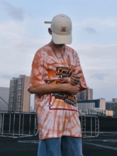 VASCO 夏季新款橘黄色发泡印花短袖T恤男女同款宽松百搭情侣半袖