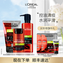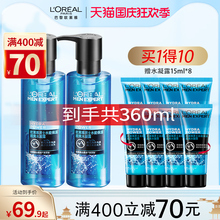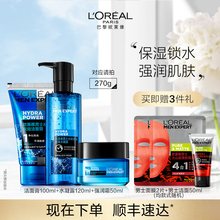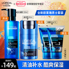 欧莱雅男士水能保湿洁面爽肤水控油凝露控油乳三件套护肤品套装