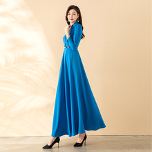 春秋长袖纯色法式连衣裙长款2022新款到脚踝显瘦显高气质长裙