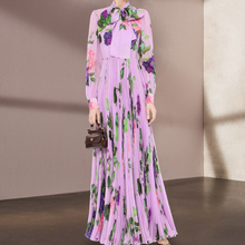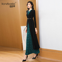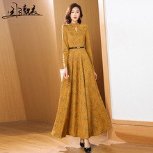 帝弗润驰超长款到脚踝连衣裙长袖秋装复古印花假两件大牌奢华长裙