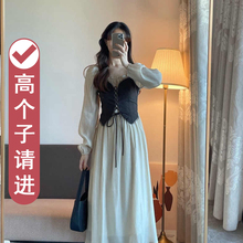 复古格子背心连衣裙收腰2022春秋新款小众设计长款到脚踝长裙1492
