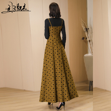 秋冬季新款高级感复古格子背心连衣裙2022气质收腰长款到脚踝长裙