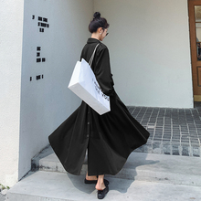 大码超长裙到脚踝秋季黑色气质显瘦两穿超长款高个子女生连衣裙