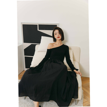 ROSEBANKS 比气质就没怕过谁 斜肩针织拼接 显高的黑色及踝长裙