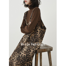 时游豹纹背带裙春夏季新款V领宽松复古百搭开叉中长款连衣裙¥79.9