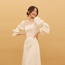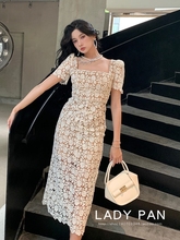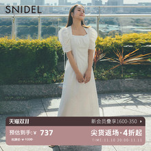 SP纯元2022春夏新款白色方领蕾丝短袖高腰气质礼服连衣裙长裙礼服¥609