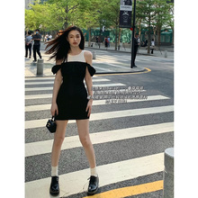 韩国chic春夏法式高级感一字肩后背蝴蝶结小礼服小黑裙连衣裙子女¥58.9