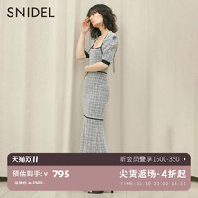 SNIDEL2022春夏新品优雅修身粗花呢方领露背鱼尾连衣裙SWNO222061¥1050