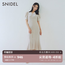 SNIDEL2022春夏新品优雅可拆刺绣领泡泡袖鱼尾连衣裙SWFO222049¥1218