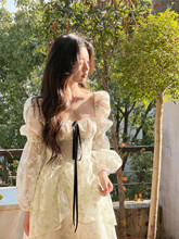 TANSSHOP 法式大方领 藕节长袖大摆裙春夏薄款连衣裙¥149.99