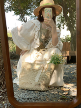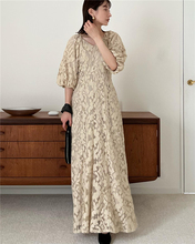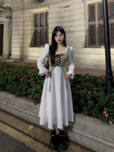 JC古着商店庄园笙歌泡泡袖连衣裙女春夏方领收腰法式复古温柔长裙¥228