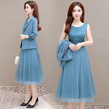 西装两件套装女2022春夏装新款时尚连衣裙女高端气质中长款网纱裙¥76