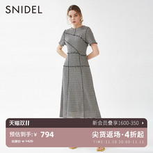 SNIDEL2022春夏新品优雅修身棋盘格木耳边系带连衣裙SWFO222007¥994