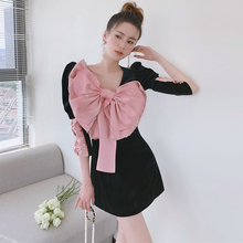 2022春夏连衣裙新款春款设计感小众时尚显瘦短款高级感蝴蝶结裙子¥699