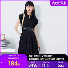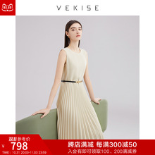 无袖百褶连衣裙VEKISE2022年春夏新款通勤法式优雅打底圆领中长裙¥898