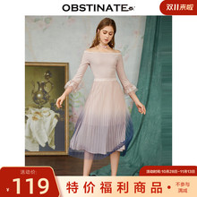 固执春夏新款复古渐变网纱一字领蕾丝露肩连衣裙GZ19ALQ4071¥119