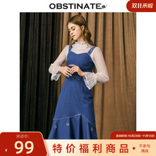 固执春夏新款复古高腰蕾丝边绣花吊带中长连衣裙GZ19CLQ4543¥99