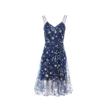 FLONAKED设计师深蓝星空绣花吊带连衣裙法式修身春夏女装短款礼服¥990