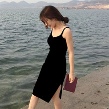 春夏季新款欧美百搭修身连衣裙性感露背开叉中长款包臀吊带长裙女¥39.8