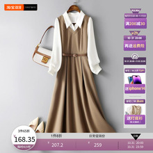 2022秋冬马甲连衣裙两件套衬衫裙子套装打底长裙女秋装气质女神范¥178