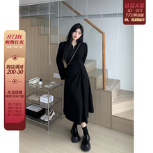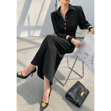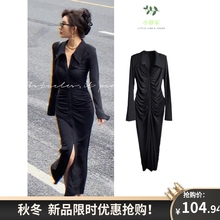 高端轻奢名媛黑色衬衫褶皱长裙女2022秋季气质性感显瘦收腰连衣裙¥128.7