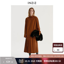 [双11预售]INSIS FEMME衬衫式H型百褶下摆连衣裙女冬新含羊毛长裙¥774