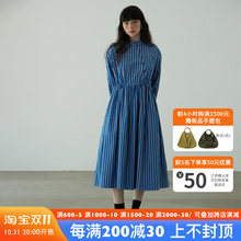 ItoshIroshI碳素磨毛条纹立领斜襟收腰A字裙大裙摆中长款衬衫裙¥550