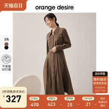 orange desire法式衬衫连衣裙女2022秋季新款收腰A字长裙气质V领¥422.99