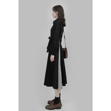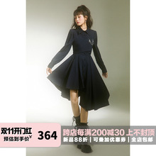 WAVY EGG波浪蛋复古拼接黑色衬衫裙女秋季长款显瘦A字收腰连衣裙¥289