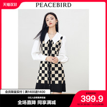 太平鸟格纹拼接假两件连衣裙2022秋季新款针织拼接衬衫连衣裙女¥499.9