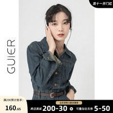 「GUIER」收腰加绒牛仔连衣裙秋冬女2022年新款法式复古衬衫裙子¥189